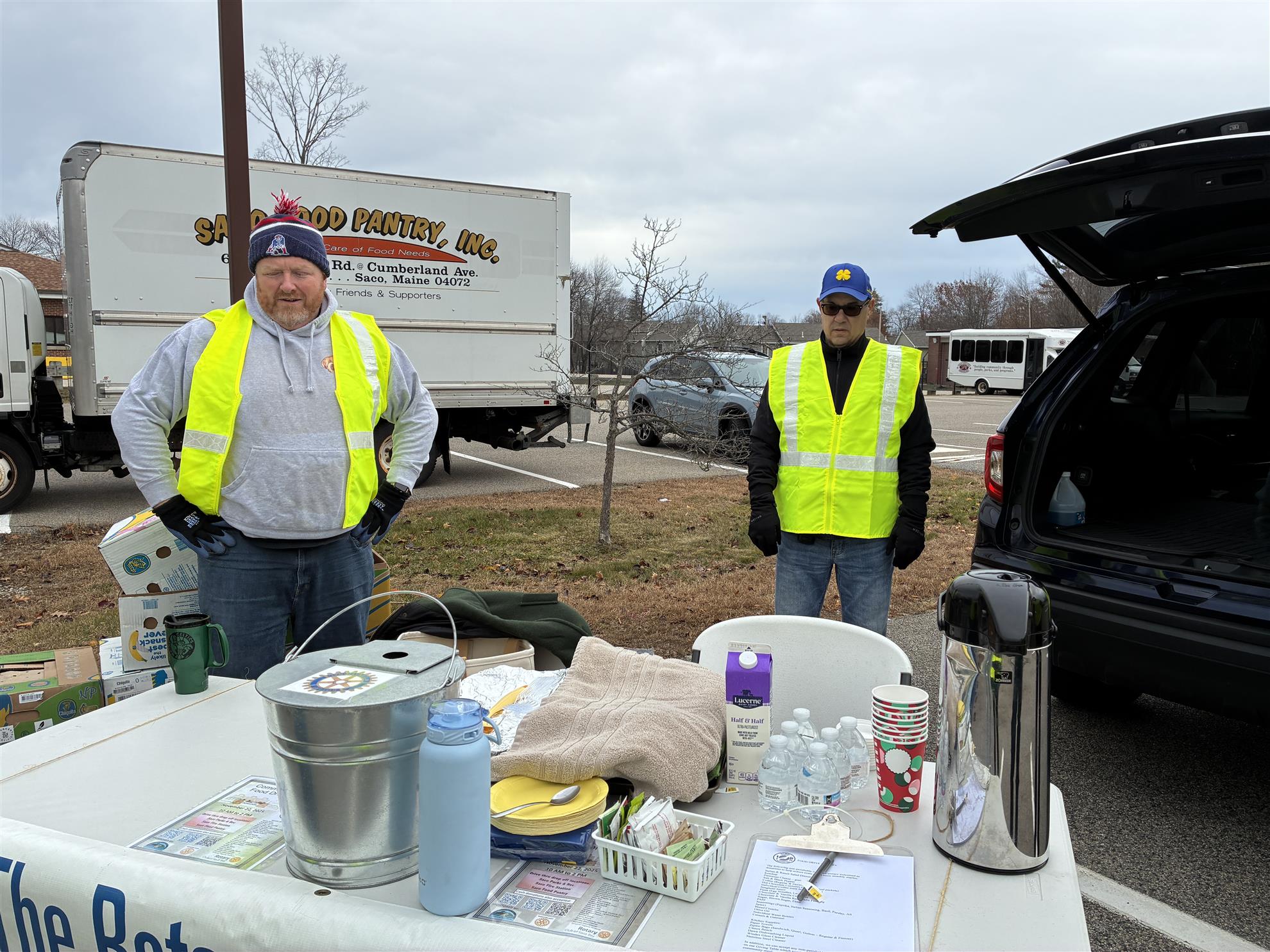 A team of Rotarians and family members helped out with the Saco Community Food Drive that was sponsored by Age Friendly Saco, Rotary Club of Saco Bay, and Rotary Club of Biddeford Saco. The Saco Community Center was one of 3 locations that collected donations. All donations received were distributed to the Saco Food Pantry and Saco Meals Program. Thanks to Saco Bay Rotarians David Arenstam & Wife Terri, Tony DeBarros, Chris Gordon, Phil & Lucie Hatch, Chris Jacques, Dave LePauloue & son Josh, Kate & Kurt Scamman, Jen Sirois & daughter Olivia, and Barry Wolach for all of your help!! A great service event to help out our community!